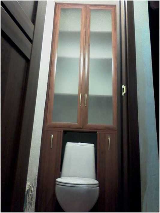 Если санузел маленький. но из него все равно хочется выжать все соки, над унитазом можно обустроить такой вот шкаф своими руками.