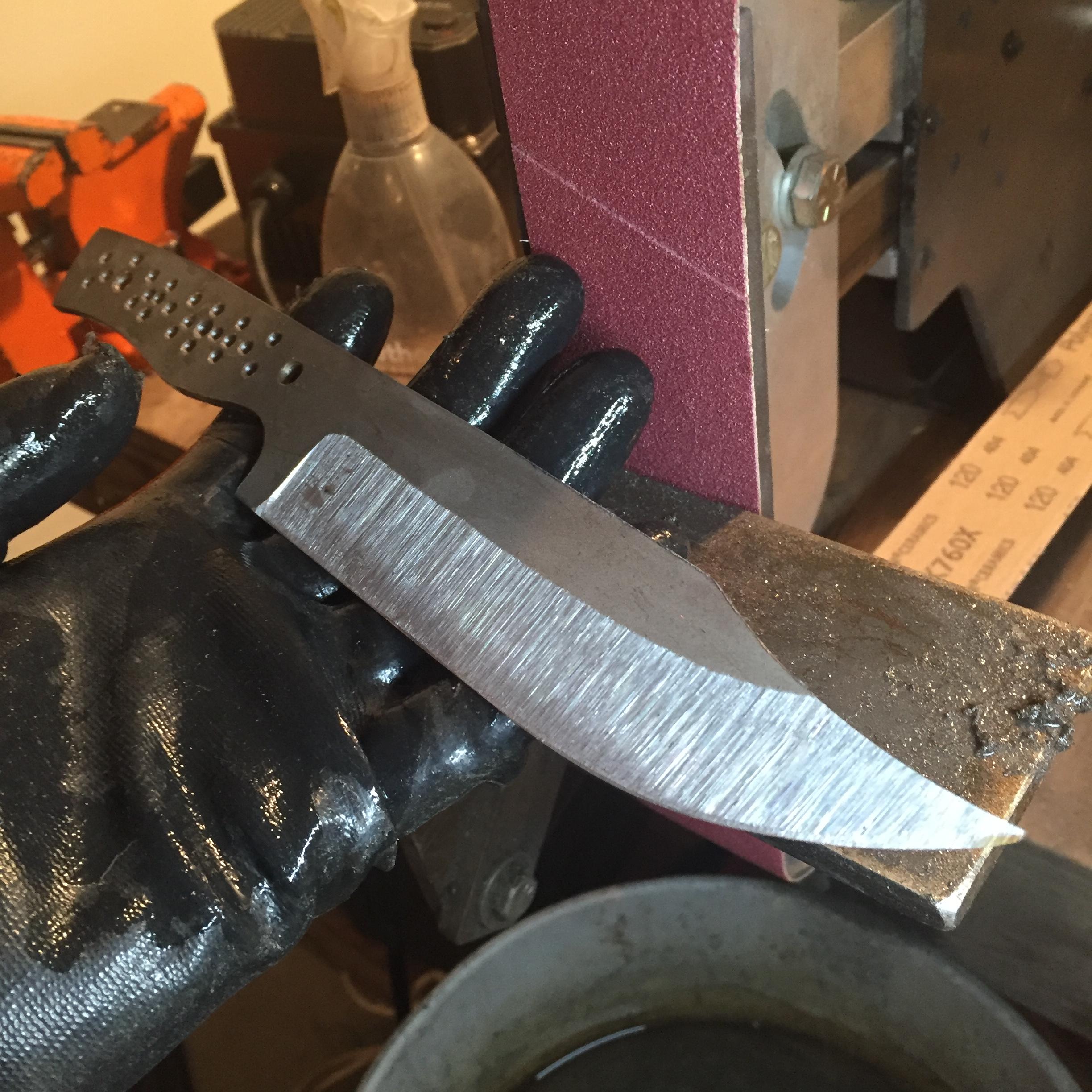 - Установив на болгарку шлифовальный круг с фракцией зерна 240 произвести полировку лезвия.
