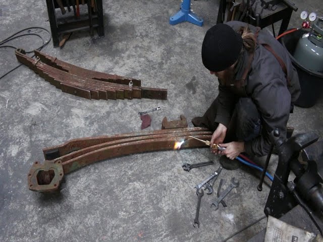 Работать будем с рессорой, ориентировочно марки стали 65Г, выяснить точно сплав поможет цвет заготовки при накаливании. Профессионалы считают ковочный метод более практичным.