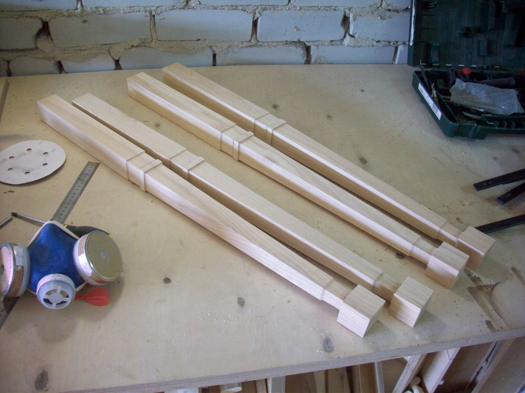 Далее необходимо счесать половину бруса рубанком, после чего обработать заготовки шлифовальной машинкой – ножки для стола своими руками готовы.