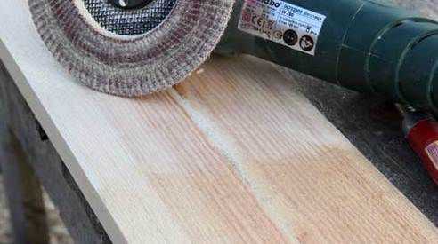 Далее покрываем стол для дачи лаком. После первого слоя поднимется весь ворс. Не пугайтесь, это нормально. Берем наждачную бумагу с тонким зерном и шлифуем до гладкости.