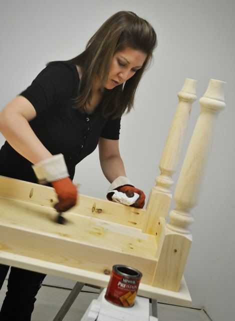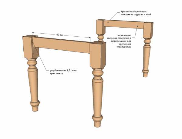 - Собирают ножки. Соединения проклеивают. Части скрепляют саморезами.