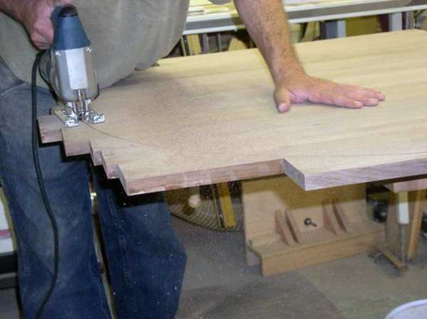 - В ножках делают паз в пол доски. Паз можно сделать электролобзиком или фрезером.