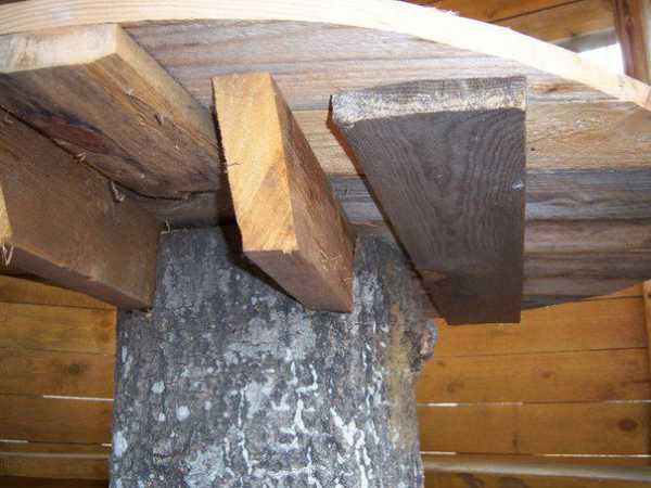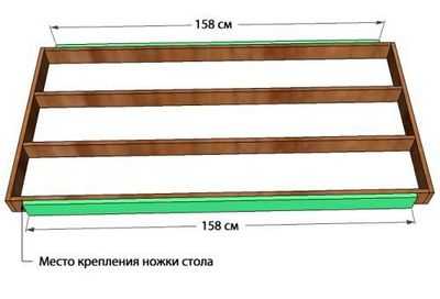 1. Крестовины ножек стола необходимо закрепить способом выборки половины доски. Использовать необходимо саморез.