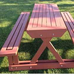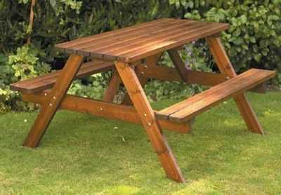 Благодаря своей особой конструкции деревянный стол со скамейками очень легко перемещать в любое место.