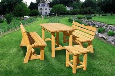 Благоустроить любой дачный участок очень просто с помощью деревянного стола со скамейками.