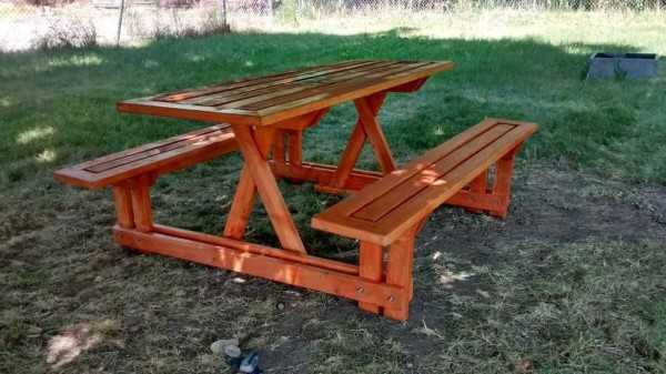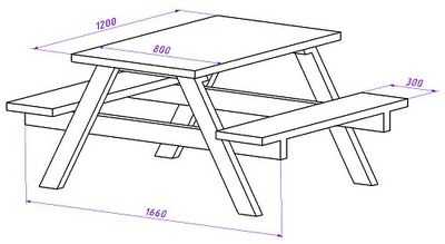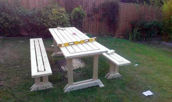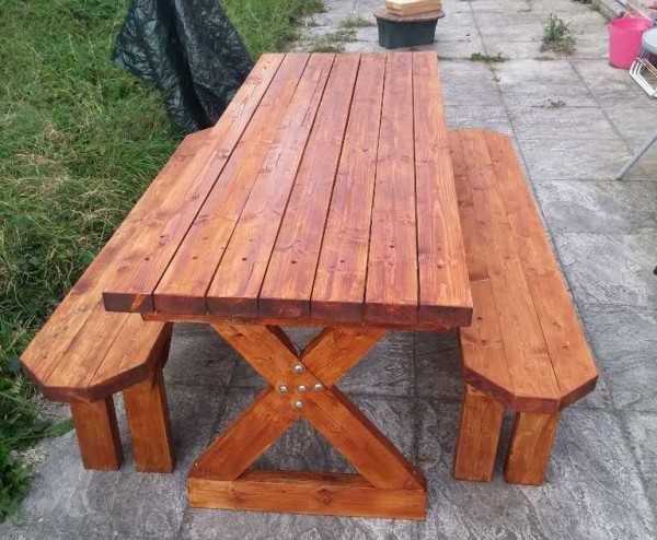 Деревянный стол со скамейками для дачи своими руками (чертежи)