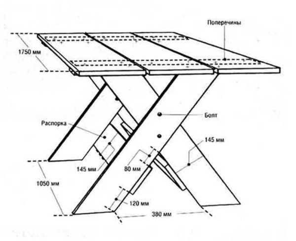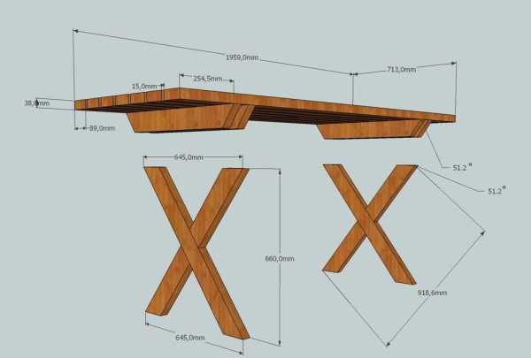 Стол с Х образными ножками по сути мало чем отличается от стола с прямыми ножками, просто имеет другую форму ножек. Однако изготовить без создания дополнительных пазов на ножках невозможно. Это несколько усложняет работу.