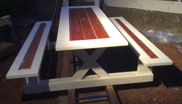 Пошаговая инструкция создания деревянного стола со скамейками.