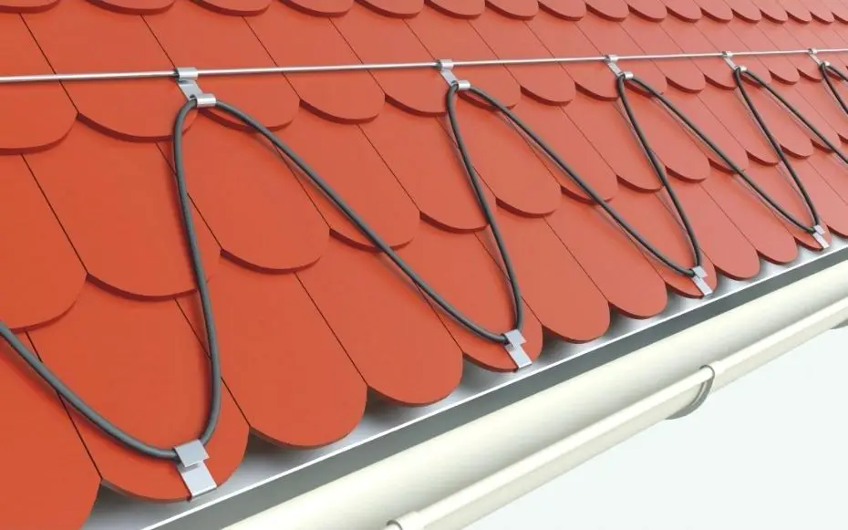 Наименее дорогой способ — это очень простая система, в которой нагревательный кабель прикрепляется к водосточным желобам, а затем спускается вниз по водосточным трубам вашего дома, желательно рядом с выпуском.