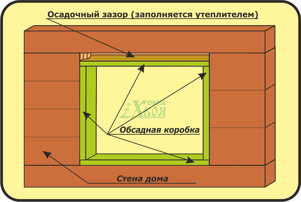 Домов без окон и дверей не бывает, но их монтаж в деревянном здании существенно отличается от установки в кирпичном доме. Особенностью построек из дерева является усадка в результате сезонного уменьшения и увеличения количества влаги в древесине, при котором происходит смещение венцов по высоте.