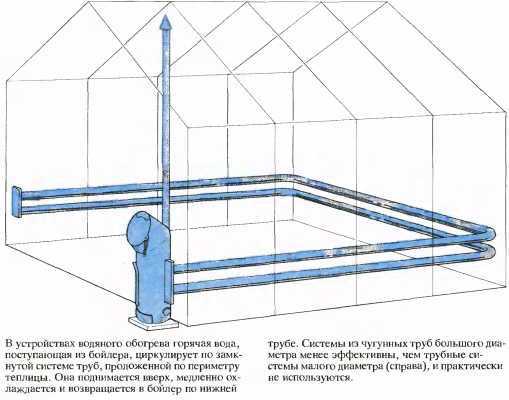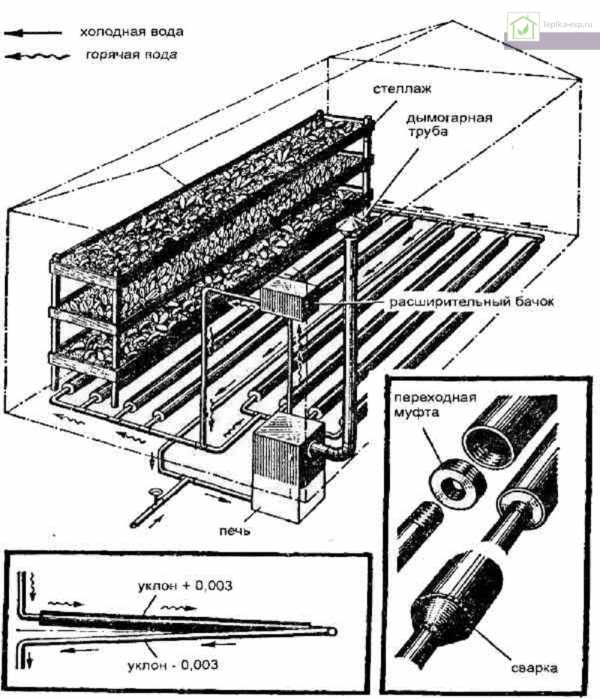 Схема обогрева теплицы с помощью водяного отопления