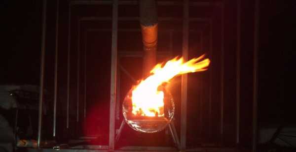 - С внешней стороны, на участке расположенном под трубой, разводят костер, горение которого необходимо постоянно поддерживать. За счет пламени воздух в трубе нагревается и поступает внутрь теплицы.