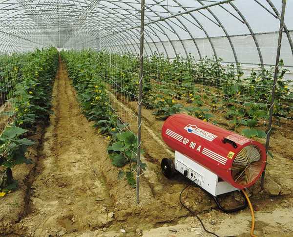 Отопление зимней теплицы газовой пушкой