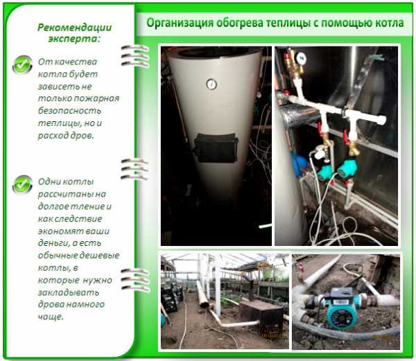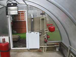 В случае монтажа отдельной отопительной системы в теплице устанавливают котел.