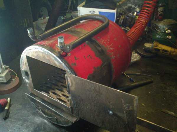 - В качестве обогревателя можно использовать старый огнетушитель, который уже выполнил свое прямое назначение. Для дальнейшего использования, верхушку огнетушителя нужно будет срезать.