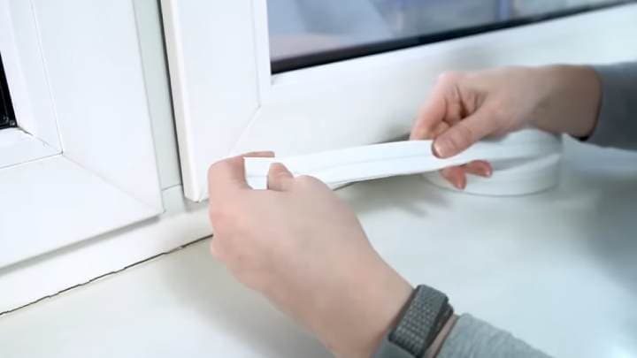 Перед тем как сделать откосы на окна, оклеиваем пластиковые детали и фурнитуру малярной лентой. Стекло желательно укрыть пленкой.