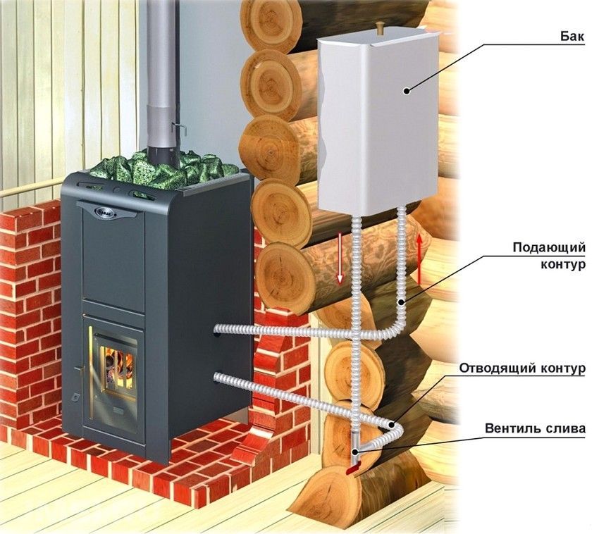 - Водяное отопление от газового или дровяного банного котла;