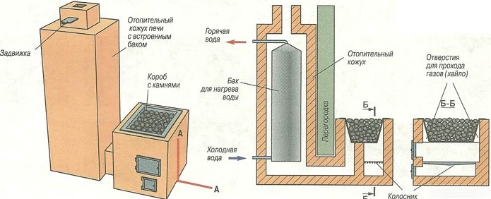 Отопление в бане с помощью главной печки