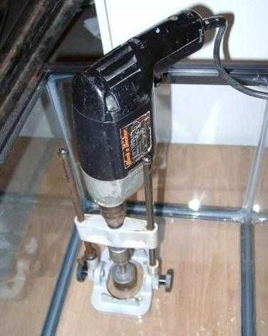Скорость вращения сверла на дрели выставляем на «единицу», либо на «минимум», в зависимости от конфигурации дрели. Нужно исключить сильное биение сверла, чтобы не потрескалось стекло при сверлении, лучше в таком случае подойдет сверлильный станок.