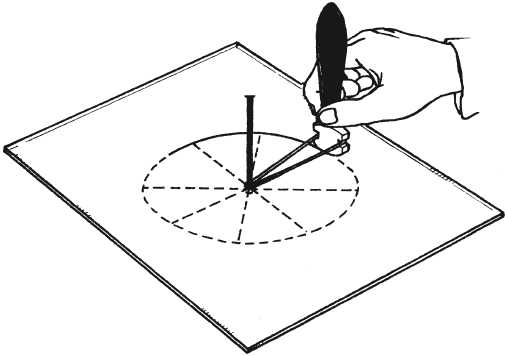 Далее к гвоздю привязывается веревочка, а с другой стороны ее конец привязывают к стеклорезу. Им делают специальный круг, его радиус равен длине веревочки. Когда круг около гвоздя сделан стеклорезом, его убирают, аккуратно простукивая полотно, чтобы сделанный круг вышел из отверстия большего диаметра, края которого обрабатывают с помощью наждачной бумаги.