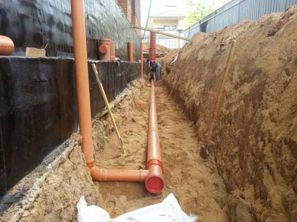 Отвод от основания талых и ливневых вод выполняет кольцевой дренаж. Такое водоотведение предполагает траншеи с трубами, направляемыми в канализацию.