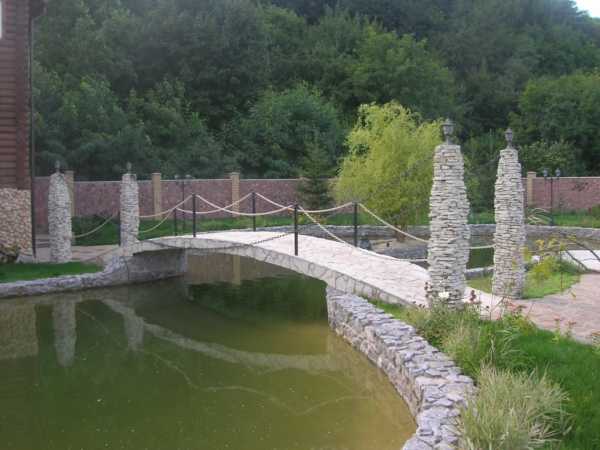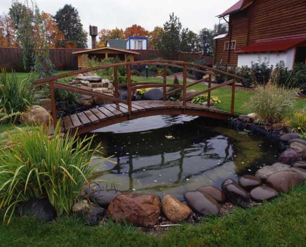 Оригинальный вид озеру может придать мостик, расположенный над ним. Интересные идеи с мостиками вы можете увидеть у нас на фото или в интернете. Такую конструкцию можно соорудить своими руками или купить уже готовую.