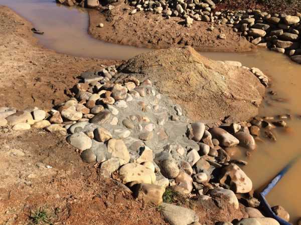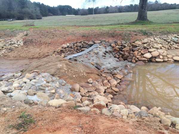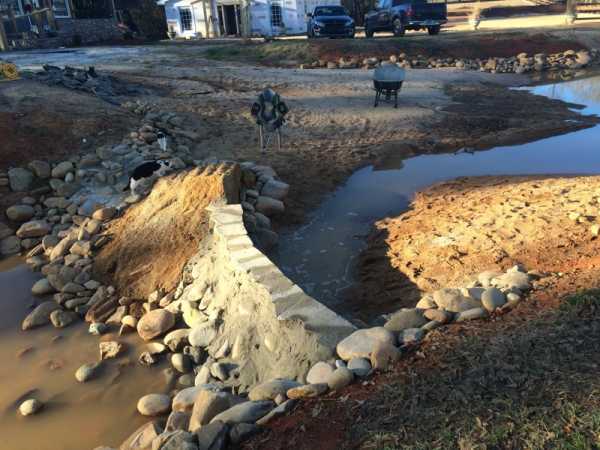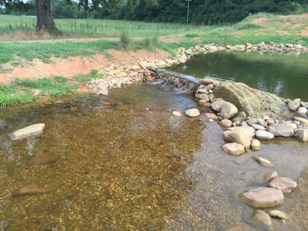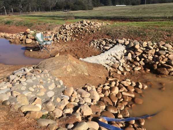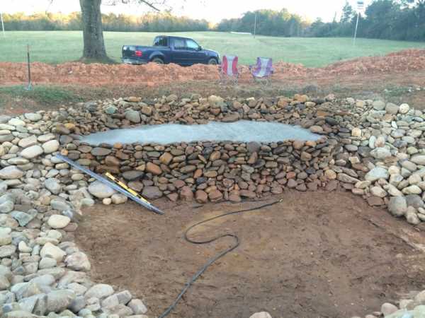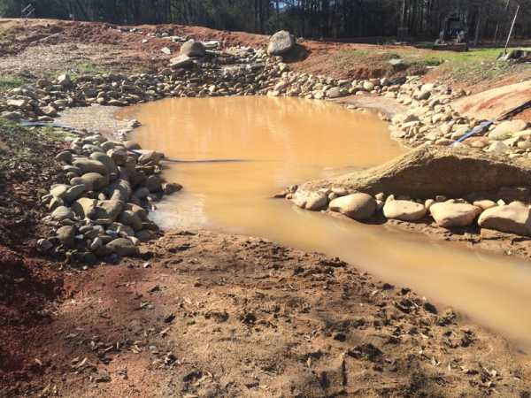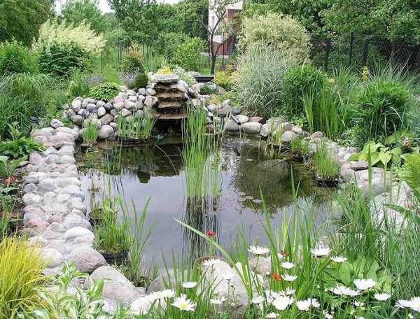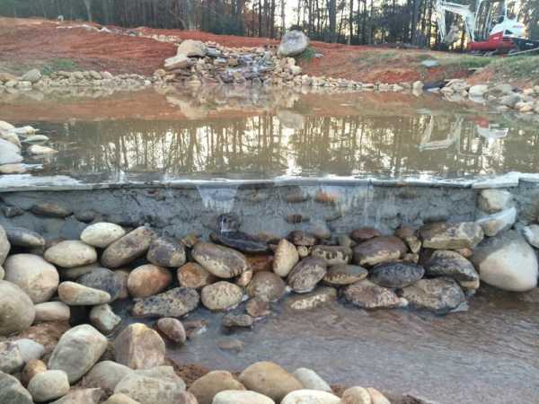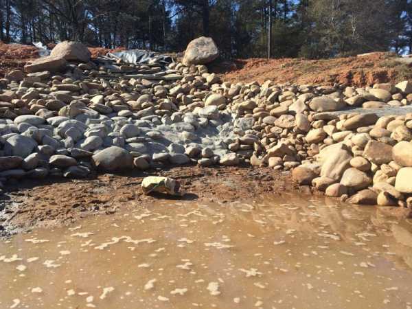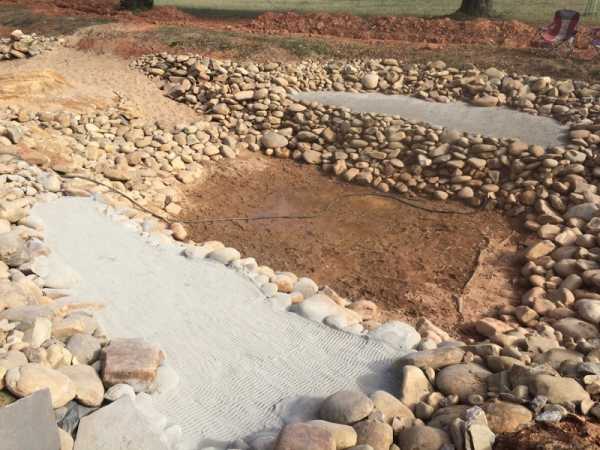 Дно сооруженного своими руками водоема покрывается вымытыми галькой, песком, округлыми камнями.