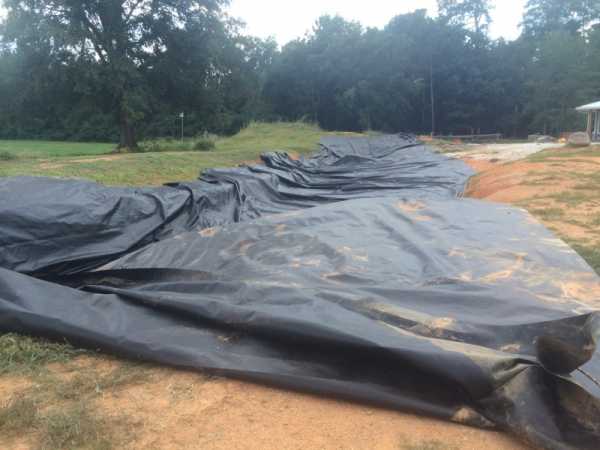 - После того как котлован будет готов, его необходимо измерить и, добавив сантиметров 50 к размерам по периметру, купить пленку.