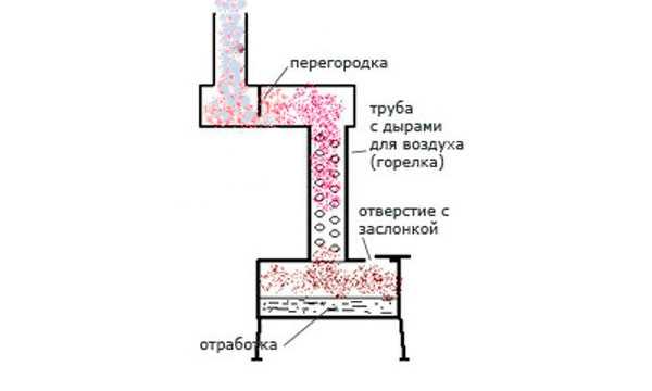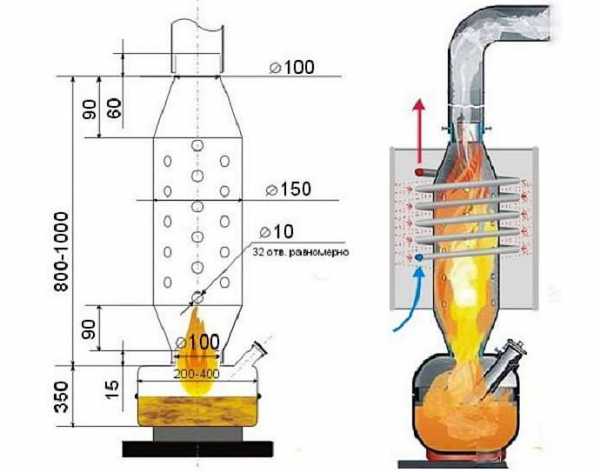 Устройство печей на отработке, чертёж и схема самодельной печи
