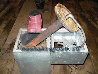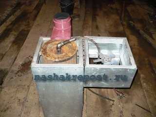 Для устройства такого типа печи в камере сгорания нужно установить крыльчатку, которая будет задерживать горящую смесь в нижней камере, тем самым обеспечивая капельную подачу топлива.