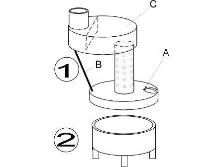 Устройство печи предельно простое. Печь состоит из двух камер, которые соединены отрезком трубы с вентиляционными отверстиями. Нижняя камера это емкость для топлива, также она выполняет функции испарителя.
