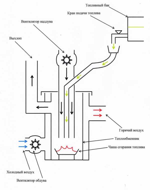 Схема устройства печи на отработанном масле.