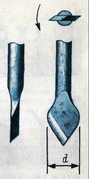 Если вам нужно сделать именно глухое отверстие, то есть другой вариант самодельного перьевого сверла: