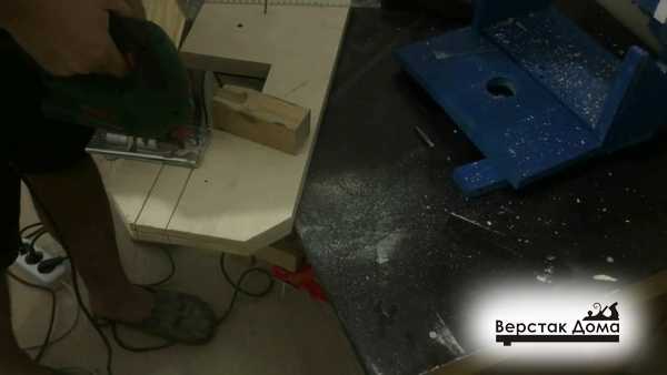 Дальнейшие действия подразумевают изготовление рабочей поверхности для ленточной пилы, Для этих целей можно использовать ДСП со вставками из МДФ. Кроме того, под пилу должна быть изготовлена тумба, размеры которой зависят от размеров самого инструмента.