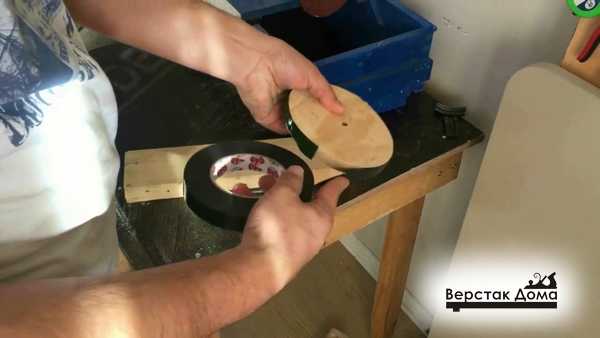 - Берут фанеру, делают шкивы, обклеивают при помощи листовой резины.