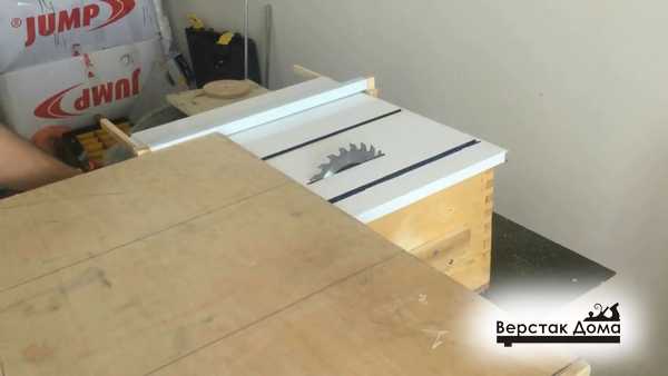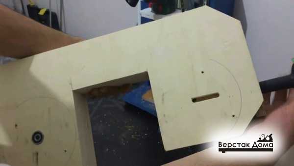 Установка электрических элементов, позволяющих обеспечить работоспособность механизма производится в конце. Возможен также вариант монтажа подсветки рабочей зоны, для этих целей потребуется наличие светильника. Для того, чтобы обеспечить параллельность упора пилы, использовался эксцентрик.