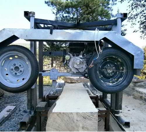 Для того, чтобы защитить поверхность колес от разрушения вследствие трения и давления, на их поверхность можно надеть резину, например, от детского велосипеда. Кроме того, уровень шума, издаваемый пилой во время работы будет значительно ниже.