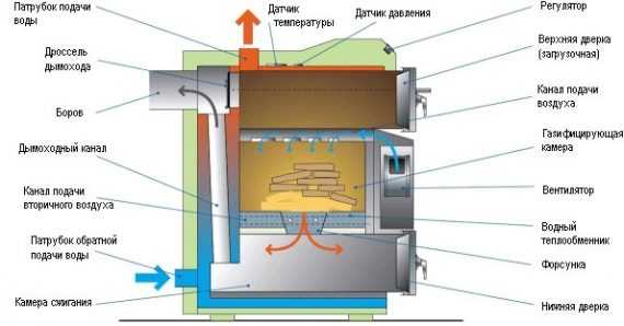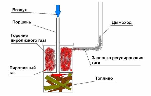 Из-за особенностей процесса горения (выделения большого количества газов) такие установки называют еще газогенераторными котлами.