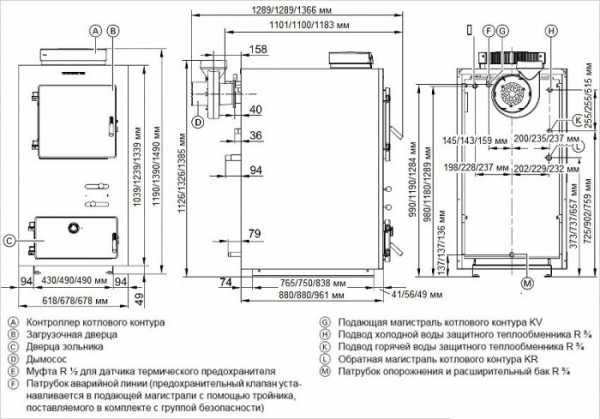 - В заготовке для верха котла делают отверстия для выхода контроллера котлового контура. Размеры стандартные, т. к. его приобретают в готовом виде до сборки котла. Общая высота котла от чистого пола до верха контроллера должна быть 1190 мм.