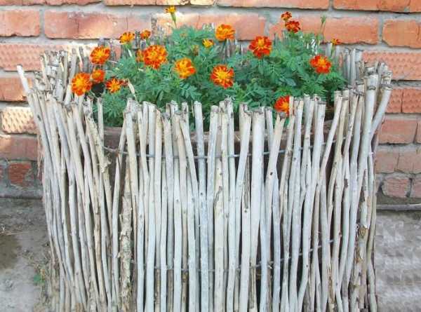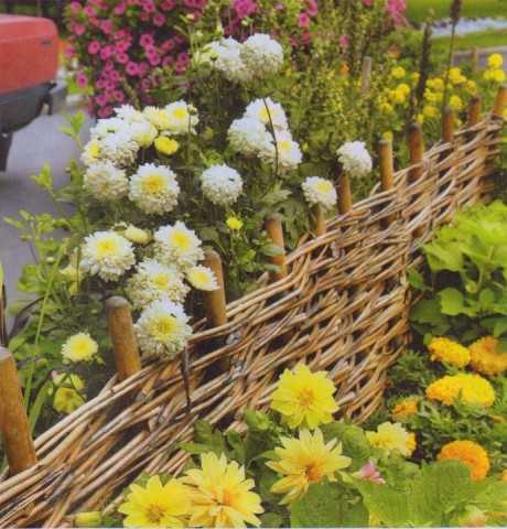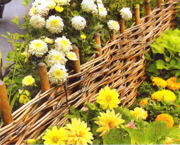 Если изготовление плетеного забора своими руками кажется слишком сложным, можно для начала сплести декоративную клумбу из ивы или лозы. Плетеные клумбы выглядят очень мило и уютно. Они могут быть выполнены в виде невысокого заборчика-бордюра, иметь овальную, круглую или прямоугольную форму.