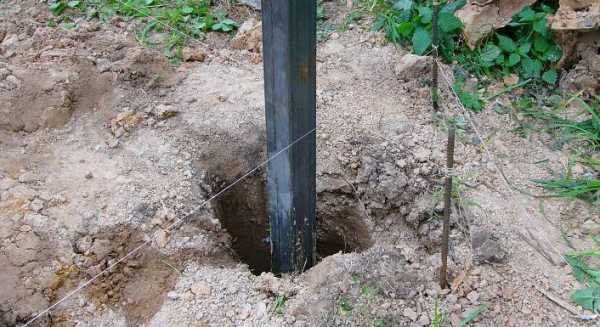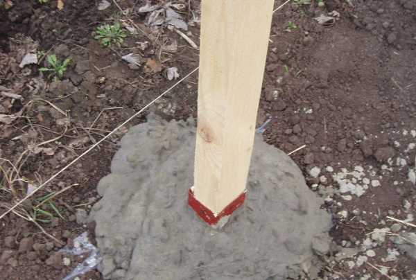 - Чтобы деревянные опоры служили дольше, столбы вбивают в землю, установив в отрезок трубы из пластика или металла;