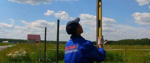 Натягивание строительной нити для опорных кольев позволит сделать забор ровным