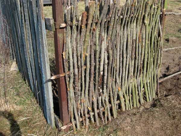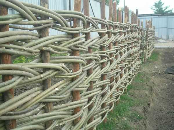 Обратите внимание! Можно плести тын из молодых побегов любых деревьев и кустарников, но при условии, что ветки будут длиной не меньше 1 м. Однако следует учитывать, что при выборе этого материала плетение будет хаотичным, а сам процесс — более хлопотным.