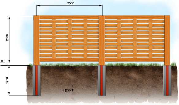 В среднем, шаг между несущими поперечинами составляет от 0,5 до 0,3 м, исходя из чего рассчитывается необходимое количество материала. Чем чаще будут располагаться опоры, тем плотнее будет плетение, и соответственно крепче будет конструкция. При вертикальном плетении также понадобятся продольные перекладины, не менее пяти на всю высоту ограждения.
