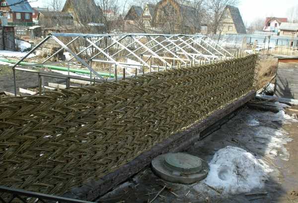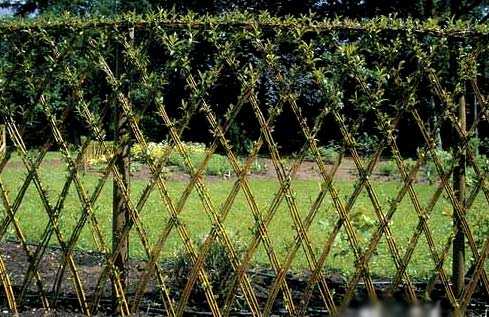 Образованная сетка из прутьев в скором времени превратится в необычную живую изгородь. Такая ограда не нуждается в защитной покраске и пропитке в отличие от неживого плетня.