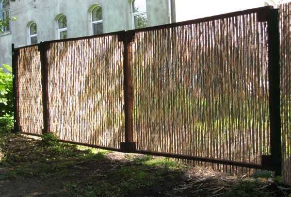 | Камыш и рогоза | Эти природные материалы отличаются хрупкостью и недолговечностью. Использовать их для возведения полноценного ограждения территории - нецелесообразно. Через несколько лет забор придет в негодность и его придется полностью менять. Использовать камыш можно для создания невысоких ограждений для клумбы или для зонального разграничения приусадебной территории. |