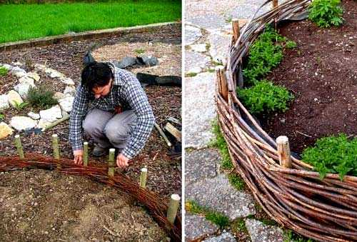 Несколько вариантов устройства плетеных заборов и оградок на даче