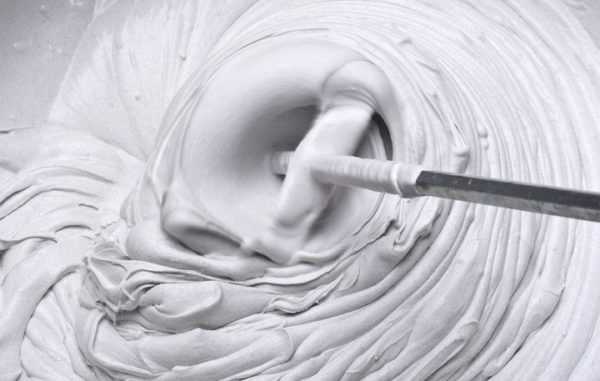 Теперь в пластиковое ведро добавляем теплую воду ( 1,4 л), добавляем 20 г пластификатора и примерно 40 г сухой краски (можно больше, если вам нужен более интенсивный цвет). Полученную смесь перемешиваем дрелью с насадкой и осторожно, не торопясь, добавляем 2,5 кг алебастра, продолжая вымешивать смесь с помощью дрели. Лучше, если кто-то другой будет помогать вам, подсыпая алебастр, пока вы работаете дрелью, но можно справиться и в одиночку, поскольку весь процесс займет не более нескольких минут.