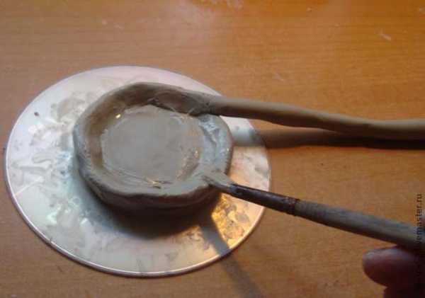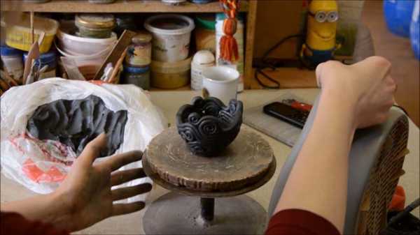 - Главное условие успешной работы – пластичная глина. Если вы видите, что на вашем изделии появились трещины, замажьте их жидкой глины. Если глина крошится, промазывайте ее мокрой кисточкой, пока материал не станет пластичным.